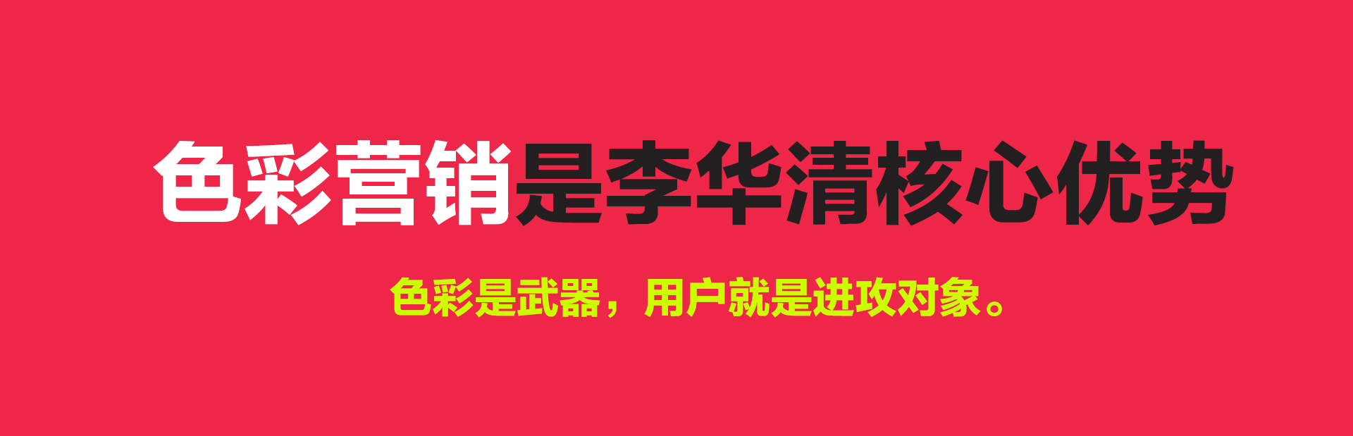 李華清“色彩研究中心”成立于2009年,截止目前仍是國內(nèi)營銷咨詢與創(chuàng)意設(shè)計(jì)行業(yè)唯一一家擁有獨(dú)立色彩研究中心的咨詢機(jī)構(gòu),同時(shí)也是李華清以超前的戰(zhàn)略思維預(yù)判到了“色彩營銷”對于未來商業(yè)競爭和建立差異化品牌所扮演的重要戰(zhàn)略角色。在當(dāng)今消費(fèi)者注意力嚴(yán)重稀缺,且產(chǎn)品(服務(wù))“創(chuàng)新”無處不在的浪潮中,傳統(tǒng)的營銷、創(chuàng)意與設(shè)計(jì)已經(jīng)無法滿足用戶日益“善變”的審美需求。而“色彩營銷”卻在新的消費(fèi)人群和消費(fèi)環(huán)境中發(fā)揮了巨大的潛能和作用,并在終端決定了消費(fèi)者67%的購買意愿。使得產(chǎn)品和創(chuàng)意在終端銷售場景中脫穎而出,為品牌贏得了消費(fèi)者注意力營銷的強(qiáng)大份額。