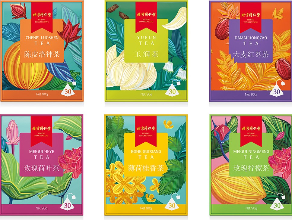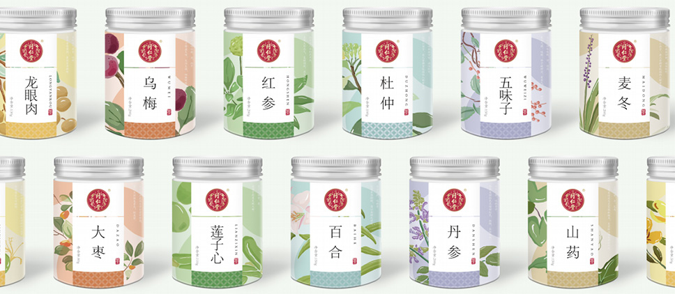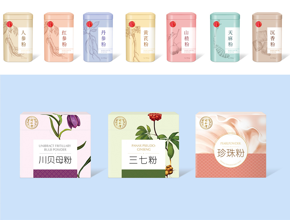 在戰(zhàn)略色彩定位上,運用了跨界融合與對撞的手法,以及經(jīng)典中式風格的色系傳遞出同仁堂藥材的高品質(zhì)以及同仁堂傳承文化的質(zhì)量觀、整體以飽和度適中的色調(diào)傳遞出輕松、健康、自然。