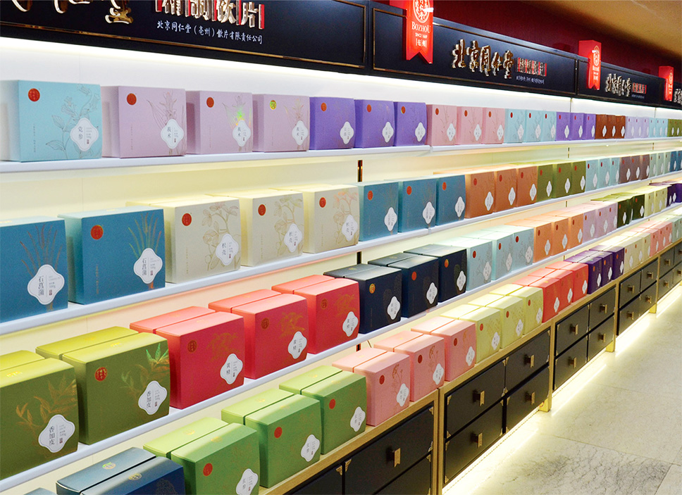 同仁堂養(yǎng)生專柜與產(chǎn)品陳列